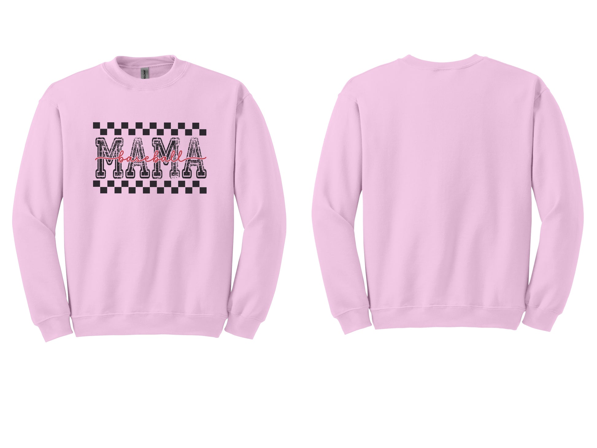 The Vibe: A classic collegiate "MAMA" block font with a vintage distressed texture, accented by a bold checkered border and a hand-scripted "baseball" strike.